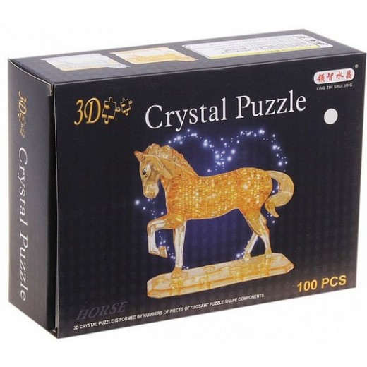 "3D пазл Лошадь" состоит из 100 деталей для сборки статуэтки лошадки на постаменте. Она переливается на свету и кажется по-настоящему волшебной. Детали разных форм и размеров соединяются не на плоскости, а в пространстве. Нужно быть очень внимательным, чтобы не ошибиться. Вы можете решать головоломку всей семьей - несколько увлекательных вечеров вам гарантировано.