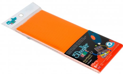 Стержни изготовлены из экологически безопасного пластика PLA оранжевого цвета, который полностью разлагается при утилизации за 45 суток. Длина стержней составляет 18 см, а в жидком состоянии они способны удлинятся до 150 см. Этот пластик имеет не высокую температуру плавления, поэтому не обожжет руки ребенка в процессе рисования. С помощью 3D-ручек ребенок сможет создавать различные фигурки и даже скульптуры, развивая пространственное изображение, логическое мышление и дизайнерские навыки.