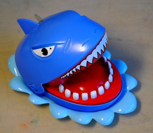 Эта забавная игра заключается в том, что игроки по очереди нажимают на зубы акулы. Игрок, на котором акула захлопнет пасть проиграл.