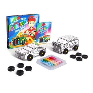 С яркими забавными машинками так весело устраивать захватывающие гонки! А если еще собрать и раскрасить эти машинки самостоятельно, то можно стать владельцем уникального гоночного автомобиля с необычным и очень красивым дизайном. Для этого в наборе есть прочная картонная основа машинки, которую ребенку предстоит собрать, и шесть ярких цветных фломастеров – ими он сможет раскрасить свою машинку так, как подскажет ему его творческая фантазия. Такой необычной машинки не будет ни у кого! Теперь юный гонщик обязательно победит соперников даже на самых сложных трассах!