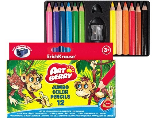Набор цветных карандашей ERICH KRAUSE "Artberry", обязательно, помогут юным художникам с легкостью воплотить свои многочисленные творческие идеи. В набор входит 12 насыщенных цветных карандашей и точилка. Укороченный вариант цветных карандашей с утолщенным грифелем 5мм. Подходят для юных художников. Эргономичная треугольная форма позволяет правильно держать карандаш. Высокое содержание пигмента, грифель мягкий, пластичный, не царапает бумагу. Все карандаши предварительно заточены и упакованы в картонную коробку, оформленную ярким цветным изображением.