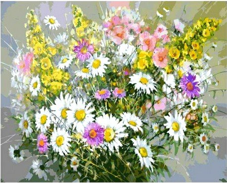 - Живопись на холсте Белоснежка Букет с ромашкам