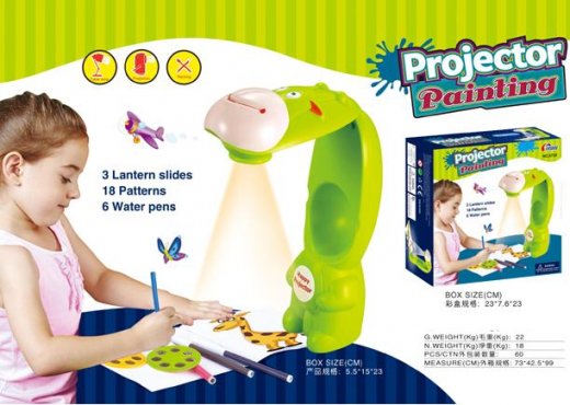 "Волшебный экран Projector Painting" послужит отличным помощником для ребенка в его первых навыках по рисованию. Достаточно установить слайд с картинками, приготовить лист бумаги, включить проектор - и на листе появится увеличенное изображение картинки, которое можно обводить и раскрашивать.