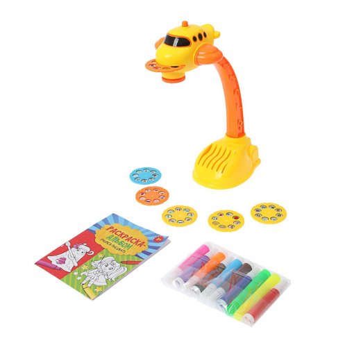 Чтобы начать работу с проектором, необходимо вставить в устройство 3 батарейки типа АА (в комплект не входят), затем установить один из шести слайдов и выбрать понравившуюся картинку. Ребёнок нажмёт на кнопку, и проекция изображения появится на бумаге. Затем малыш возьмёт в руки карандаши или фломастеры и с удовольствием будет обводить, раскрашивать и дорисовывать.