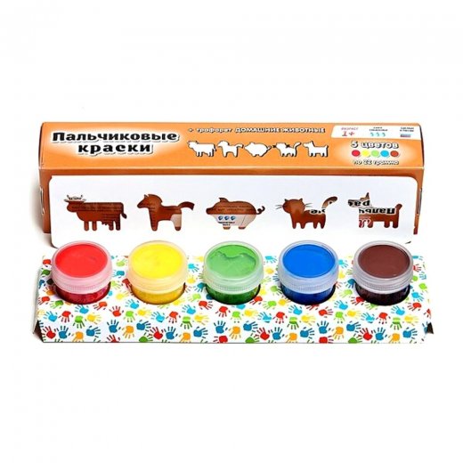 - Пальчиковые краски с трафаретом Домашние животные 5цв.