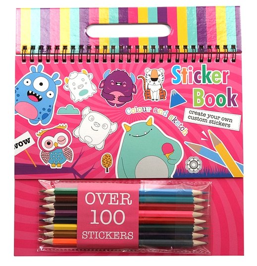 Состав набора: альбом, более 100 наклеек, 16 цветных карандашей