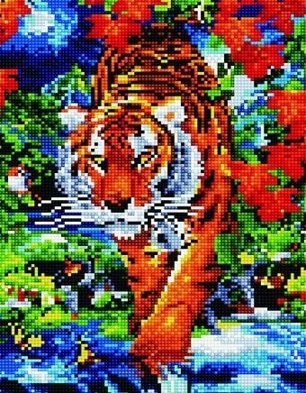 Алмазная мозаика Тигр в джунглях – это прекрасный подарок для юных любителей творчества и поделок своими руками. Окунитесь вместе со своим ребенком в мир творчества! С помощью набора предстоит собственноручно создать потрясающее произведение искусства, сделать это весьма просто, но очень интересно.