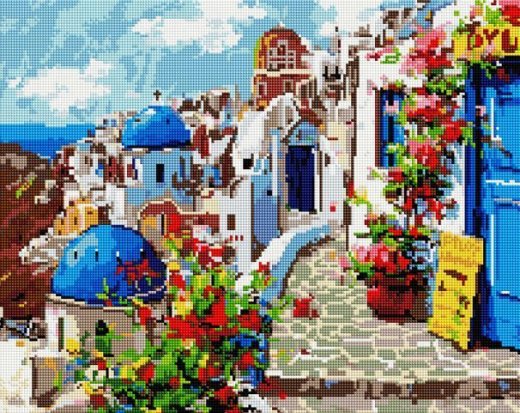 Алмазная мозаика Греческие домики – это прекрасный подарок для юных любителей творчества и поделок своими руками. Окунитесь вместе со своим ребенком в мир творчества! С помощью набора предстоит собственноручно создать потрясающее произведение искусства, сделать это весьма просто, но очень интересно.