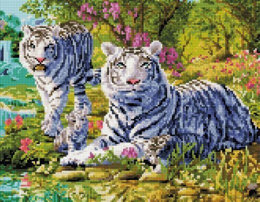 Алмазная мозаика Белые тигры – это прекрасный подарок для юных любителей творчества и поделок своими руками. Окунитесь вместе со своим ребенком в мир творчества! С помощью набора предстоит собственноручно создать потрясающее произведение искусства, сделать это весьма просто, но очень интересно.