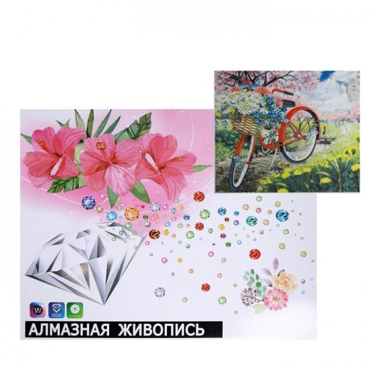 - Алмазная мозаика полное заполнение Велосипед с цветами 40×50 см