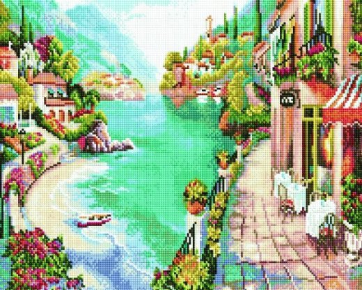 Купить Алмазную мозаику 40*50 Лазурная набережная в Новосибирске Вы можете в магазине развивающих и настольных игр "Игры Почемучек"