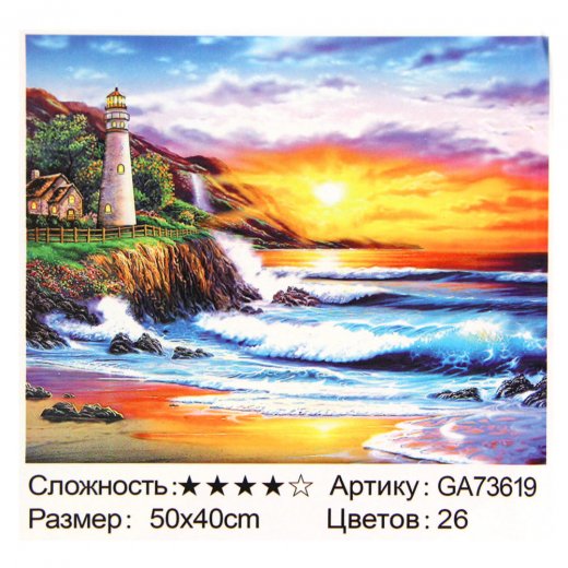- Алмазная мозаика 50*40 Вечернее море полная выкл