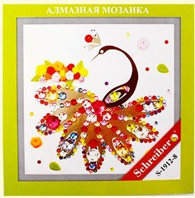 Возьмите картинку, снимите защитный слой, насыпьте в тарелочку страз и переносите стразы на клейкую основу. Немного усидчивости и фантазии и шедевр готов. Отличное занятие для времяпрепровождения досуга вашего ребенка.