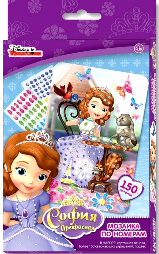 Мозаика по номерам София Прекрасная – это картонная основа с нанесенным на него рисунком. Пустые ячейки с номерами необходимо заклеить разноцветными стразами из набора. Каждому цвету соответствует определенная цифра на рисунке. Заклеив всю картинку, ребенок получит яркую и оригинальную поделку, которую можно будет повесить на стену, воспользовавшись подвесом. Такое занятие это замечательный вариант для времяпрепровождения досуга, который оставит массу положительных эмоций.