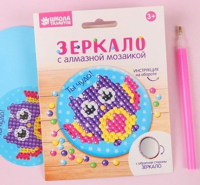 Алмазная вышивка на зеркале Сова – серия креативного творчества, для создания ослепительно красивой мозаики из разноцветных кристаллов, чарующей и завораживающей своим блеском и сиянием граней! Ребёнку предстоит разложить карандашом кристаллики, постепенно заполняя рисунок элементами соответствующего цвета и номера. Сделать это весьма просто, но очень интересно и занимательно.