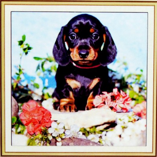 Купить Алмазную мозаику Щенок с цветами 20*20 см в Новосибирске Вы можете в магазине развивающих и настольных игр "Игры Почемучек"