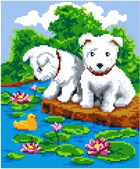 Алмазная картина. Щенки у пруда 50*40