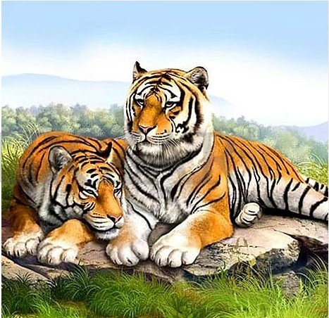 Купить Алмазную мозаику Tukzar Тигры 30х30 см в Новосибирске Вы можете в магазине развивающих и настольных игр "Игры Почемучек"