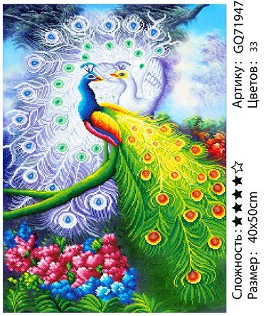- Алмазная мозаика 40х50 Павлины частичная выкл.
