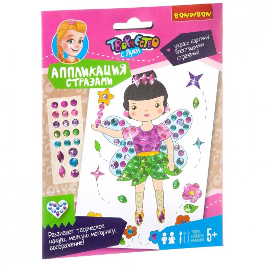 Аппликация Куклы позволит детям интересно и с пользой провести время. В этом наборе вы найдёте всё, что нужно для создания забавной картинки: вам не понадобятся дополнительные материалы, клей или ножницы. Чтобы наклеить деталь, нужно просто снять с липкого слоя защитную плёнку и приложить стразы в нужное место картинки.
