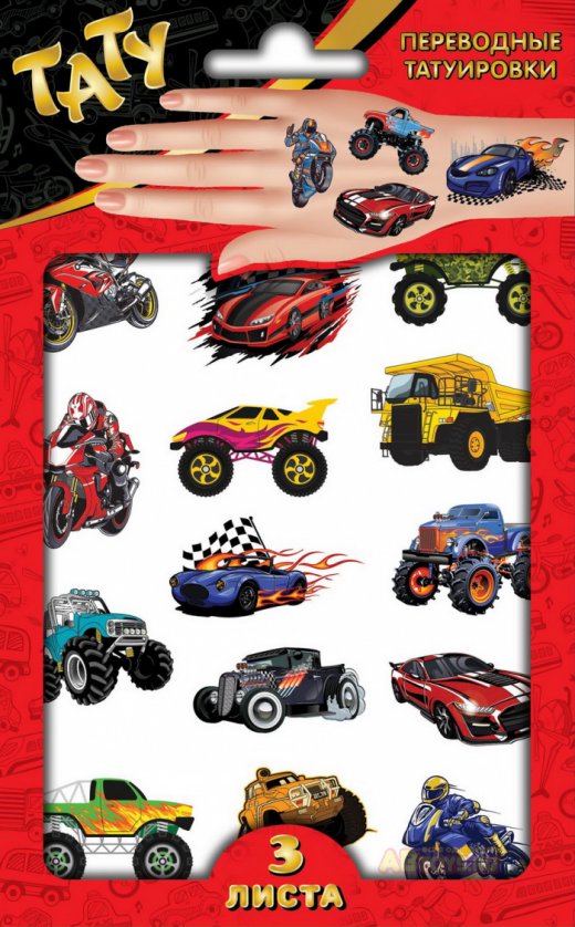 Купить Татуировки-переводилки Супер машинки в Новосибирске Вы можете в магазине развивающих и настольных игр "Игры Почемучек"