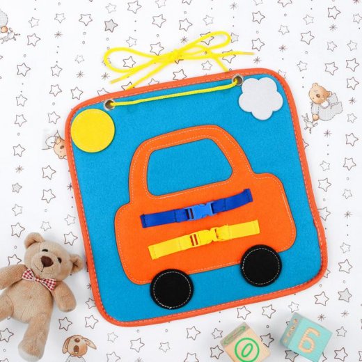 Купить текстильный бизиборд "Машина 29х29 см" в Новосибирске Вы можете в магазине развивающих и настольных игр "Игры Почемучек".