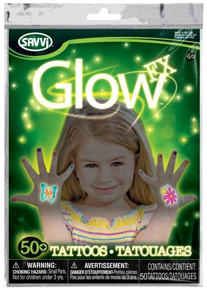 Тату временные светящиеся в темноте для девочек 50 шт в ассорт