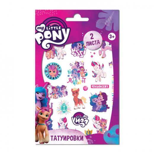 Набор детских татуировок My Little Pony отличает яркость красок и cтильный дизайн. Нанести татуировку очень просто выберите понравившуюся картинку, снимите прозрачную пленку, приложите рисунок лицевой стороной на сухой участок кожи, плотно прижмите смоченной губкой и подождите 30 секунд.Украшение готово!