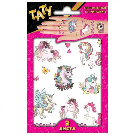 Купить Наклейки татуировки Единороги 2 листа в Новосибирске Вы можете в магазине настольных и развивающих игр "Игры Почемучек"