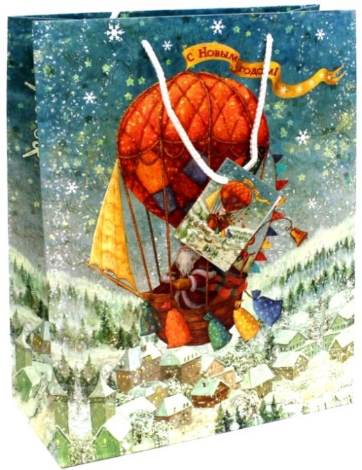Бумажные пакеты - лидеры по популярности среди подарочной упаковки. Выполнен он в красочных тонах, с изображением деда мороза, летящего на новогоднем воздушном шаре. Благодаря качественной печати рисунок не сотрётся и не выгорит и к тому же он достаточно прочен. Так что в дальнейшем его владелец может пользоваться им по прямому назначению, для походов в магазин и т.д.