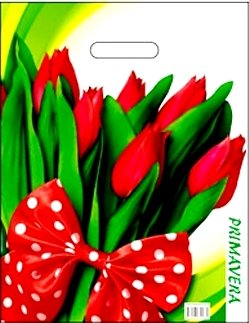 Полиэтиленовые пакеты — лидеры по популярности среди подарочной упаковки. Выполнен он в легком, весеннем стиле, в красочных тонах, с изображением тюльпанов. Благодаря высокому качеству материала рисунок не сотрётся и не выгорит и к тому же он достаточно прочен. Так что в дальнейшем его владелец может пользоваться им по прямому назначению, для походов в магазин и т.д.