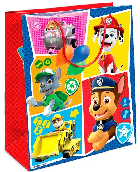 Пакет подарочный Щенячий патруль – станет отличной упаковкой для подарка юному поклоннику мультсериала «Щенячий патруль». Он выполнен и плотного материала и оснащен удобными ручками, а яркий дизайн очень понравится ребенку. На пакет нанесены изображения любимых героев мультика, щенки выглядят просто очаровательно и у каждого из них милая и невероятно добрая улыбка. Вашему ребенку захочется поскорее посмотреть, что скрывается за красочной упаковкой.
