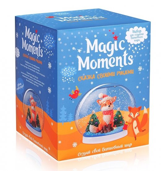 Создайте свою миниатюрную зимнюю сказку – Волшебный шар, внутри которого скрывается заснеженный лес! Этот эффектный сувенир сделает каждый ребенок с новым набором из серии Magic Moments. В этом набореуже собраны все нужные аксессуары и инструменты, а также подробная инструкция о том, как собрать шар и слепить для него красивую фигурку. Покупая данный набор, вы приобретаете готовую творческую мастерскую для своего ребенка. Это яркий и запоминающийся подарок, который открывает для детей новый вид хобби. Все наборы продаются в специальных праздничных упаковках, чтобы вы могли дарить их по самым разным поводам.