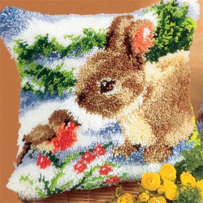 Купить Чехол на подушку 40*40 Кролик и снегирь ковровая техника в Новосибирске Вы можете в магазине развивающих и настольных игр "Игры Почемучек"