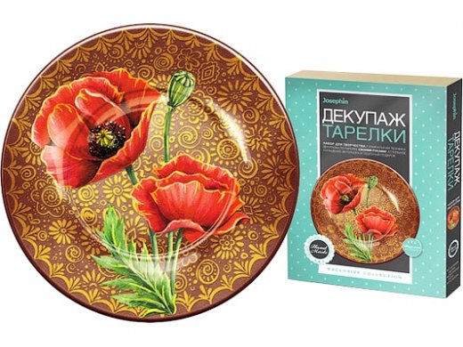 Если вашу дочку уже сложно удивить каким-либо видом творчества, то смело дарите ей этот набор. В нем есть тарелка, которая после несложных манипуляций превратится в настоящее произведение искусства, украшенное яркими цветущими маками на корпусе. Благодаря этому набору ваш ребенок освоит новый вид творчества – декупаж, то есть технику декорирования с помощью красивых бумажных заготовок.