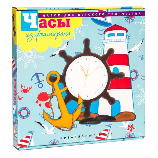 Набор для детского творчества Волшебная мастерская «Часы. Морские» – это сборная модель, в результате работы над которой ребёнок создаст удивительно красивые часы. Часы оснащены настоящим действующим часовым механизмом, поэтому они не только украсят комнату своим неповторимым дизайном, но и будут весьма полезны. Всё необходимое для создания часов из фоамирана включено в комплект набора. Используя подробную пошаговую инструкцию, будет легко справиться с этой интересной творческой работой и она обязательно доставит бурю эмоций и позитива!