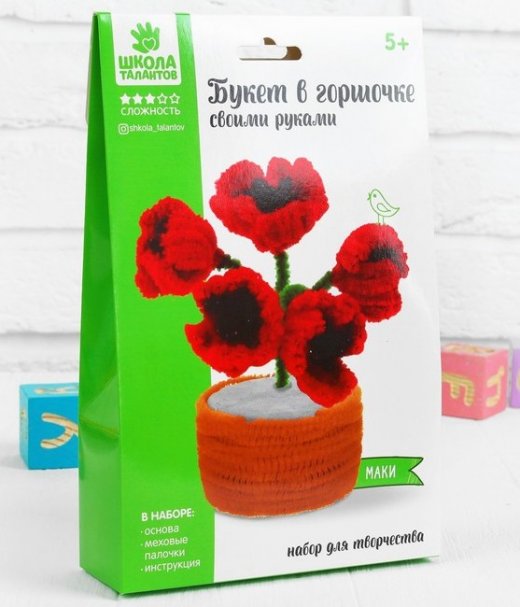 Купить Набор для творчества Букет в горшочке Маки в Новосибирске Вы можете в магазине развивающих и настольных игр "Игры Почемучек"