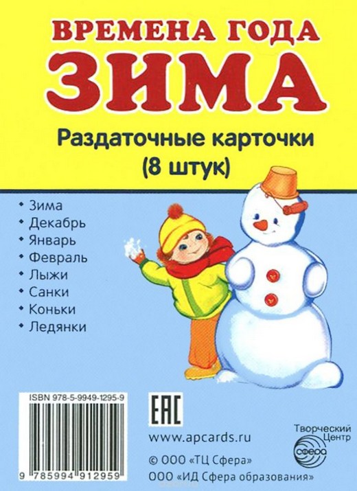Купить Раздаточные карточки Времена года Зима в Новосибирске Вы можете в магазине развивающих и настольных игр "Игры Почемучек"