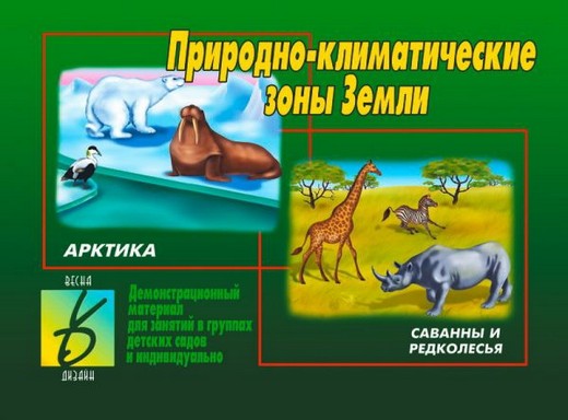 Демонстрационный материал Природно-климатические зоны Земли - разработан специально для юных натуралистов – детей от 3 лет. Пустыни и полупустыни, переменно-влажные экваториальные леса, влажные экваториальные леса, тундра, Арктика, лесостепи и степи, саванны и редколесья, Антарктида, область высокой поясности, смешанные и широколиственные леса, жестколиственные вечнозеленые леса и кустарники (субтропики), тайга – все эти зоны, а также их обитатели, изображены на карточках формата А4. Они сделают детские занятия по экологии интересными и наглядными. А еще с карточками можно придумать множество веселых развивающих игр! Вот лишь несколько примеров:
