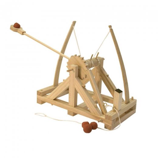 Катапульты появились еще во времена Древней Греции и Древнего Рима, однако наибольшее представление о них пришло к нам со средневековья. Леонардо модифицировал катапульту в 1485 году, задействовав для метания снаряда энергию, скрытую в натяжении согнутой древесины. Развлекательный проект от одного из величайших умов за всю историю человечества.
