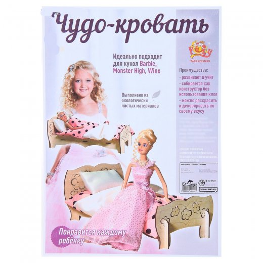 Конструктор "Чудо кровать" позволит девочке из деревянных деталей собрать отличную кукольную мебель. Игрушка изготовлена из хорошо отшлифованной березовой фанеры, не имеет острых углов, поэтому она абсолютно безопасна для ребенка. Готовую кроватку нужно застелить постельным бельем, которое также имеется в наборе.