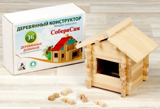 Конструктор "Собери сам: Хуторок" представляет собой интересный набор для юных строителей. В него входят более ста деталей, с помощью которых получится построить 16 различных домиков. Деревянные бруски имеют разную длину и специальные вырезы для стыковки, что позволяет им без труда скрепляться между собой. Построенные домики можно "оживить" при помощи игрушек и элементов декора, раскрасив при этом отдельные участки.