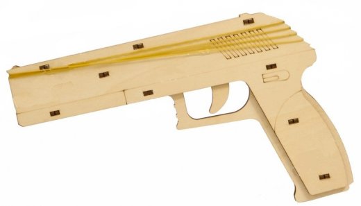 Конструктор деревянный Пистолет Резинкострел – станет прекрасным подарком для мальчишек, которые любят представлять себя в роли настоящих разведчиков или военных. Детское оружие выглядит очень реалистично. Рукоятка, затвор, спусковой механизм и дуло сделаны почти как у настоящего оружия.