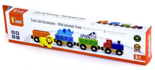 Набор аксессуаров для железной дороги Viga Toys Поезд с животными - замечательный деревянный поезд, в каждом вагончике которого едут дикие животные. Игрушка состоит из трех вагонов с животными и поезда, вагончики между собой крепятся с помощью магнита. Подходит для использования в качестве отдельной игрушки либо как дополнительный аксессуар к железной дороге Viga.