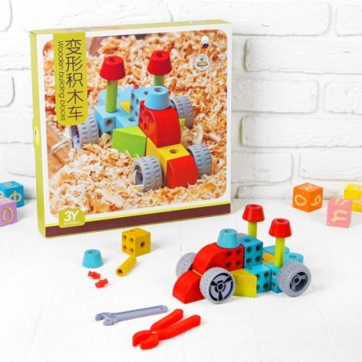 Конструктор Машинка - удивите вашего малыша, подарив ему красочный деревянный конструктор! Множество ярких деталей моментально привлекают внимание ребенка, он с интересом их рассматривает и использует в своих играх. Детали конструктора "Машинка" крепятся между собой болтиками.