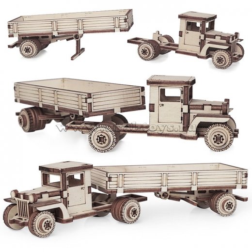Все детали выполнены из качественной древесины и имеют сильный насыщенный запах дерева. Наборы укомплектованы клеем ПВА и наждачной бумагой. Любой конструктор после сборки можно раскрасить акриловыми и гуашевыми красками, но даже без этого в результате получается полноценная красивая игрушка с подвижными элементами.