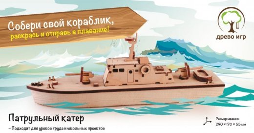 Деревянный набор сборной модели «Катер патрульный» из экологически чистого материала. Набор укомплектован тюбиком клея, напильником и подробной инструкцией. Ничего больше для сборки не нужно!