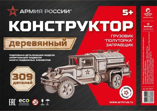 - Конструктор из дерева Грузовик Полуторка Заправщик 309 дет