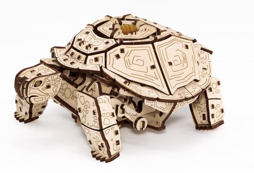 Конструктор Механическая Черепаха от EWA (Eco-Wood-Art) — сборная механическая модель из дерева, которая "оживает" после сборки. Очень красивые узоры на панцире, большого размера, можно раскрасить как вашей душе угодно. Двигается уверенно и размеренно, как настоящая. Модель из экологически чистых материалов, предназначенная для самостоятельной сборки и имеющая механизм, приводящий в движение. У механизма есть ручная заводка и возможность запускать и останавливать Черепаху. Конструкция деревянной модели позволяет ей двигаться максимально реалистично: во время движения Черепаха мило перебирает ножками, чем вызывает бурю положительных эмоций у детей и взрослых. Это идеальная игрушка, замечательный подарок и достойный предмет коллекционирования для дома и офиса. Собранная модель отлично украсит любой интерьер от квартиры до офиса и подарит каждому море позитивных ощущений от сборки. Коллекция животных от EWA пополняется, вместе с Щенком, Трицератопсом и Птичкей ей будет весело.