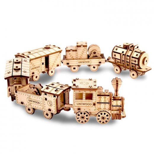 - Деревянный конструктор UNIWOOD Набор Поезд 6 в 1